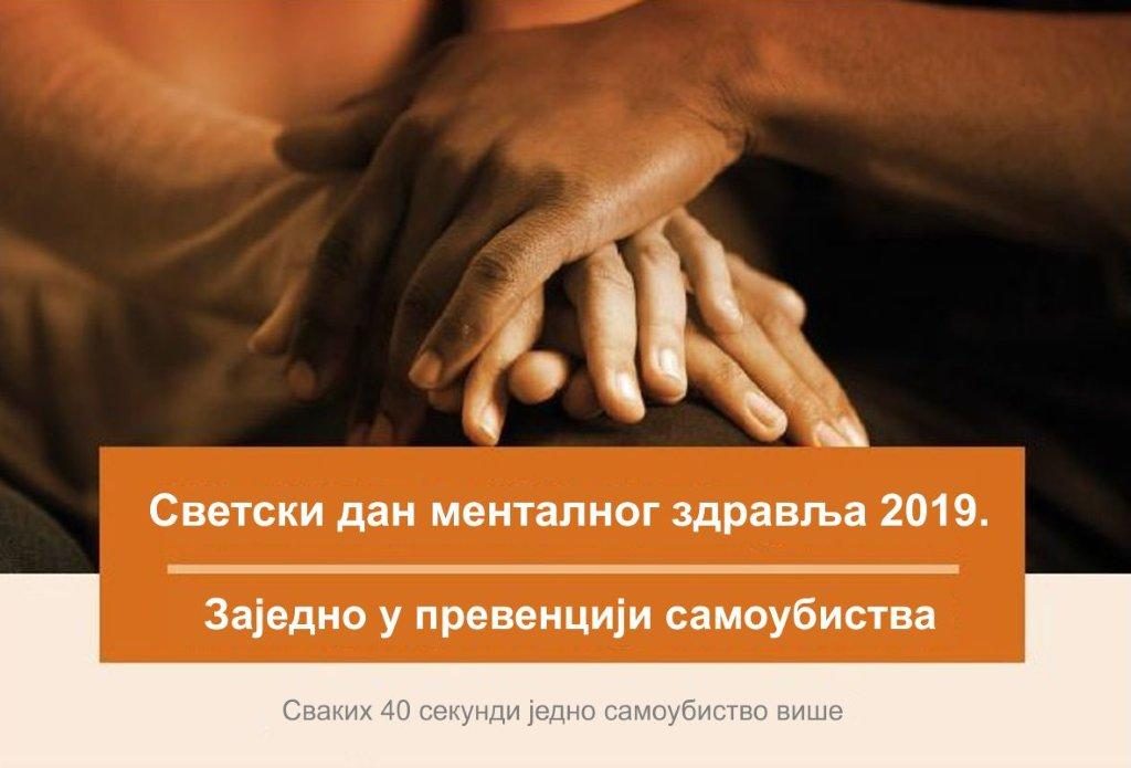 Светски дан менталног здравља се сваке године обележава 10. октобра на иницијативу Светске федерације за ментално здравље и уз подршку Светске здравствене организације, а у партнерству са министарствима здравља и организацијама цивилног друштва широм света. Ове године обележавање Светског дана менталног здравља посвећен је превенцији самоубиства. Сваке године близу 800.000 људи себи одузме живот, док је број покушаја самоубистава још већи. Свако самоубиство је трагедија која погађа породицу, а утицај на заједницу и државу има дугорочан ефекат. Самоубиства се дешавају током читавог животног века и други су водећи узрок смрти међу младима од 15 до 29 година на глобалном нивоу.